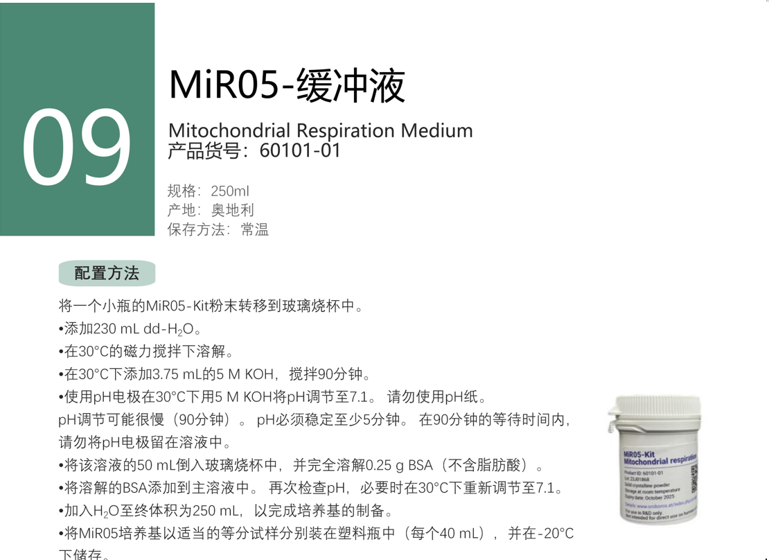 配置方法 :将一个小瓶的MiR05-Kit粉末转移到玻璃烧杯中。